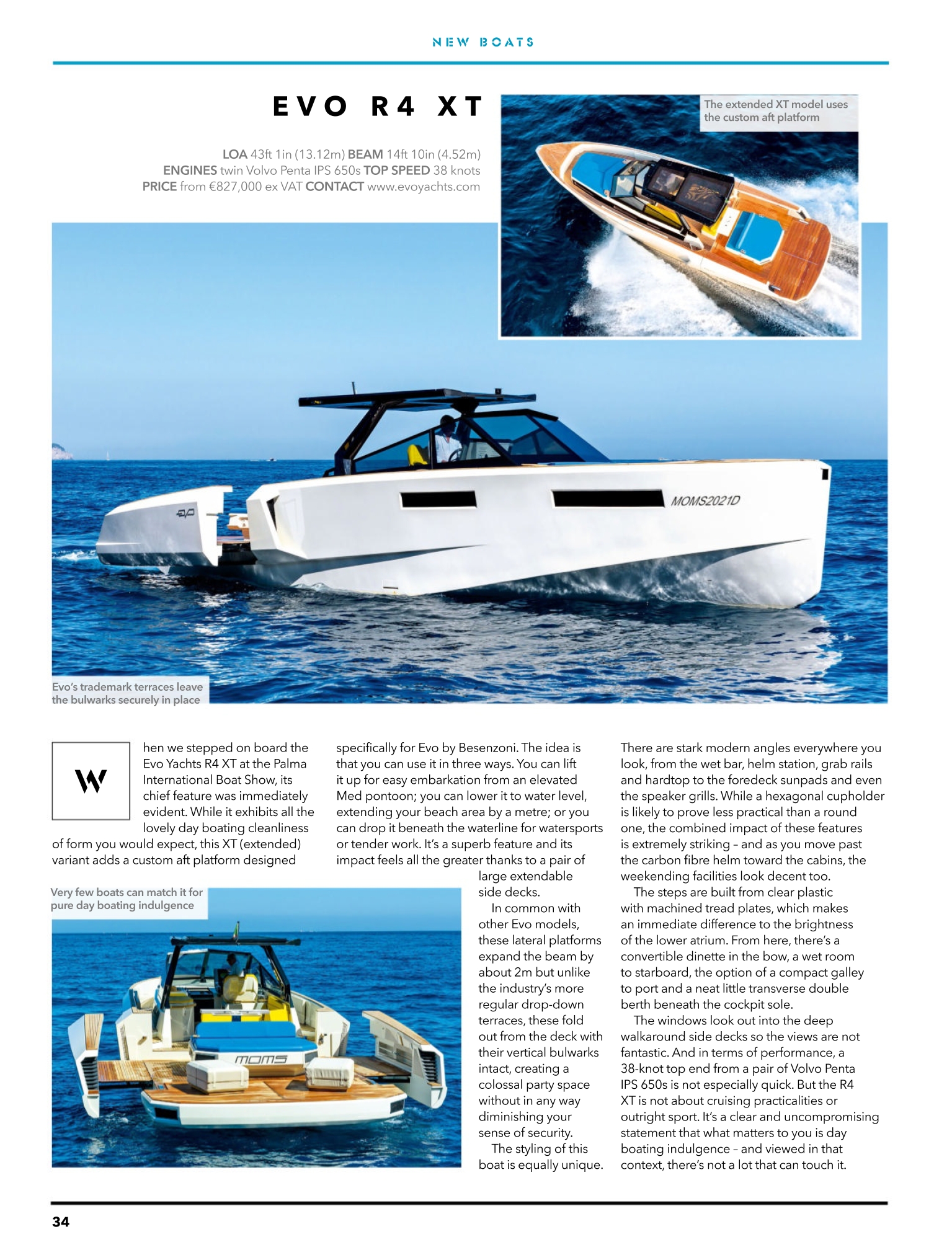 Le terrazze tipiche di Evo lasciano i baluardi saldamente in posizione. Pochissime barche possono eguagliarlo per il puro piacere della nautica da diporto quando siamo saliti a bordo dell’Evo Yachts R4 XT al Palma International Boat Show, la sua caratteristica principale W è stata immediatamente evidente. Sebbene mostri tutta la bella pulizia delle forme che ti aspetteresti dalla navigazione diurna, questa variante XT (estesa) aggiunge una piattaforma di poppa personalizzata progettata.