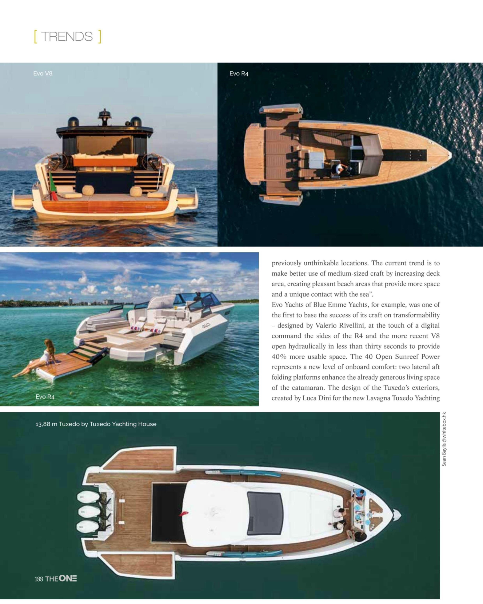 Evo Yachts di Blue Emme Yachts, per esempio, è stato uno dei primi a basare il successo della propria imbarcazione sulla trasformabilità
