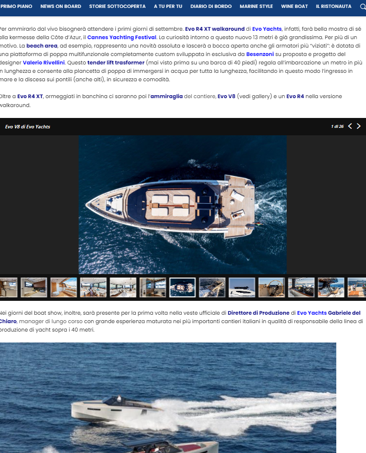 Per ammirarlo dal vivo bisognerà attendere i primi giorni di settembre. Evo R4 XT walkaround di Evo Yachts, infatti, farà bella mostra di sé alla kermesse della Côte d’Azur, il Cannes Yachting Festival.