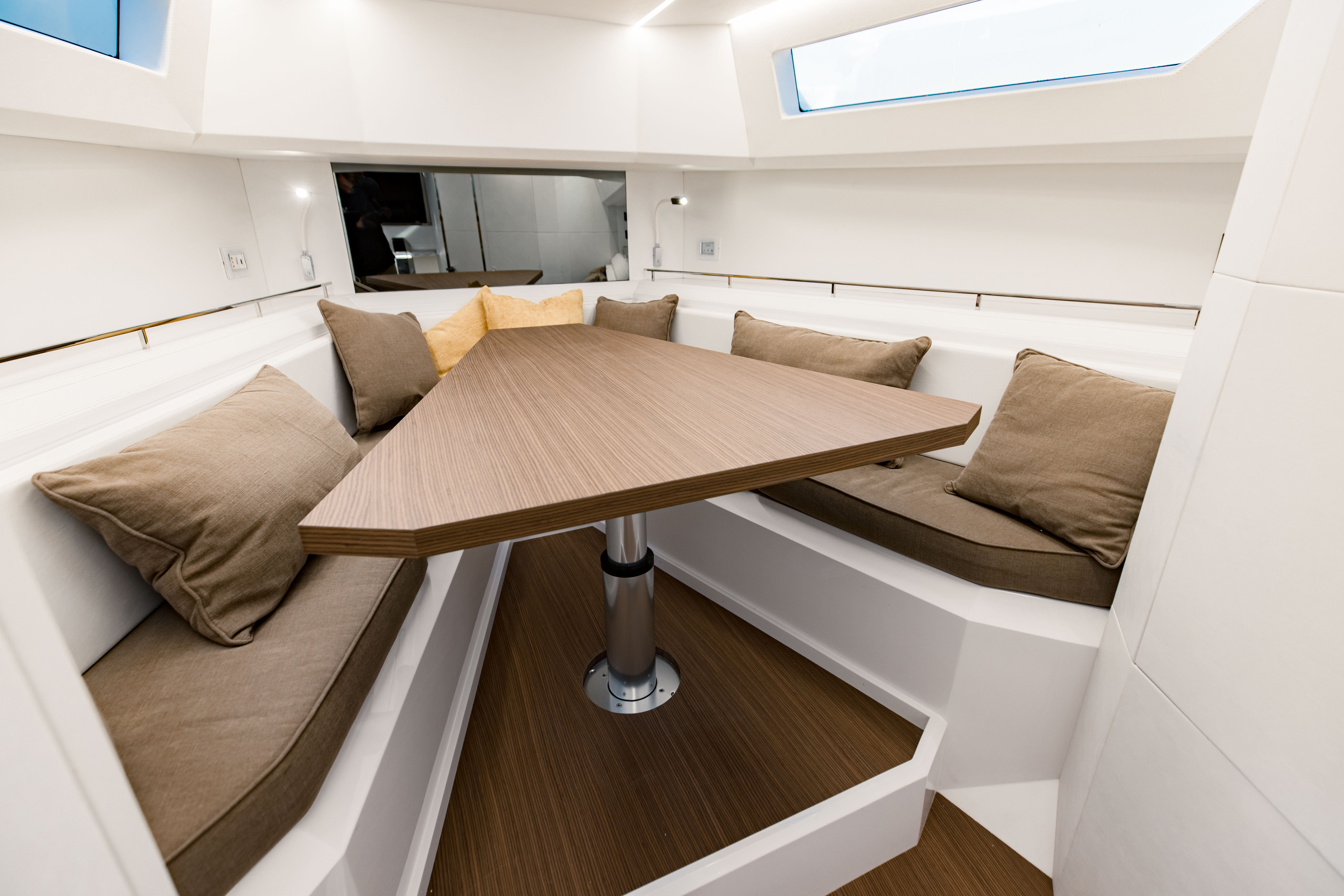 Maximizing the space available is a design idea that can be sensed everywhere on the R4 WA. The interiors are conceived like an open space running from bow to stern, with a transformable dinette that creates additional sleeping room for mini-cruises.