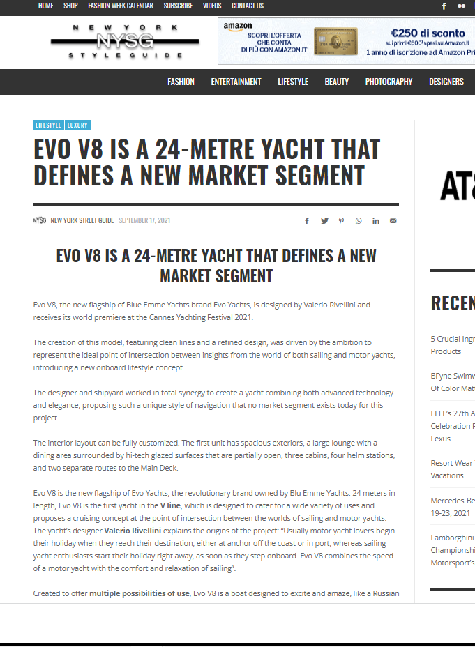 Evo V8, la nuova ammiraglia del brand Evo Yachts di Blue Emme Yachts, è disegnata da Valerio Rivellini e riceve la sua anteprima mondiale al Cannes Yachting Festival 2021.