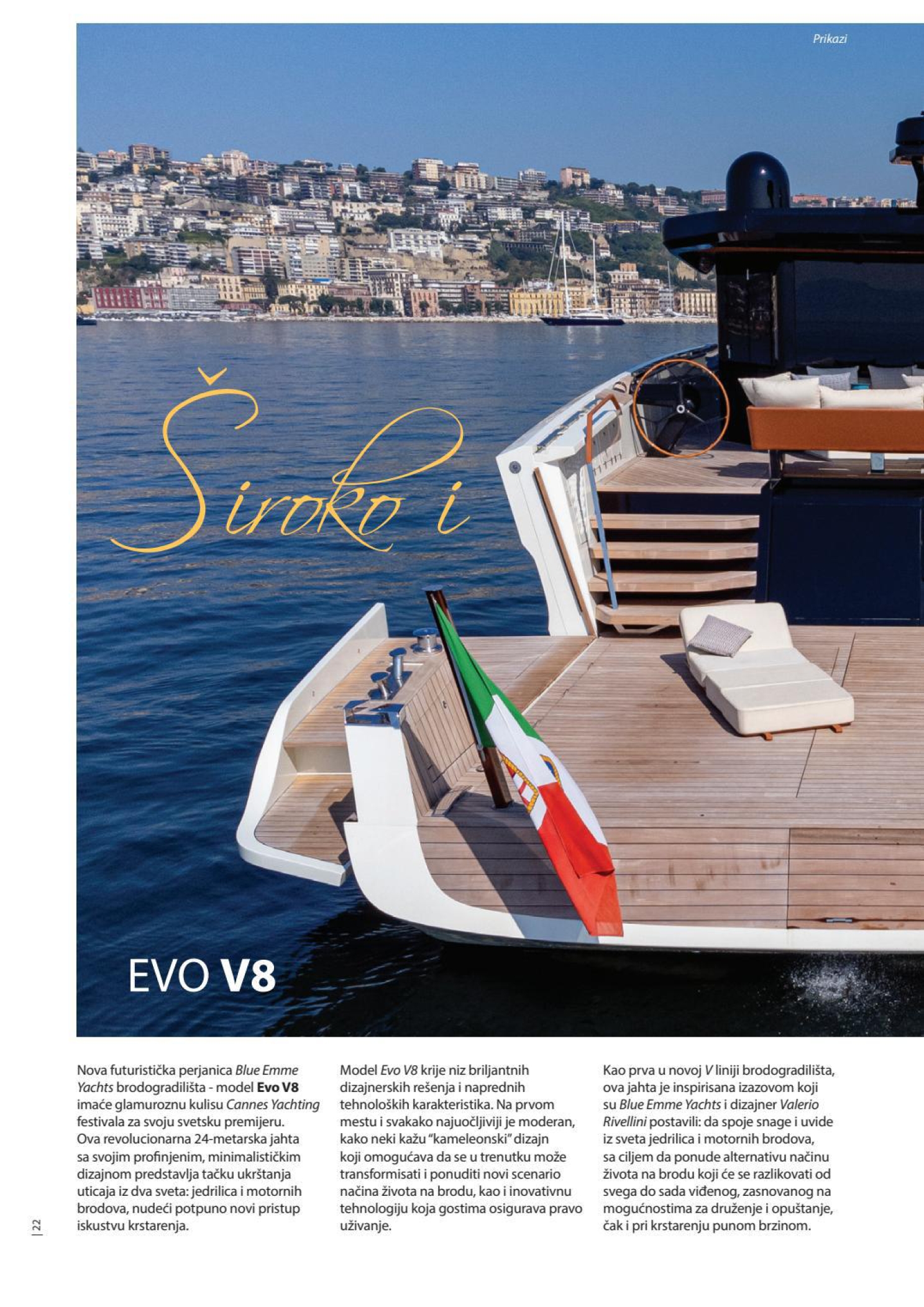 La nuova ammiraglia futuristica del cantiere Blue Form Yachts – il modello Evo V8 avrà la torre glamour del Cannes Yachting Festival per la sua anteprima mondiale. Questo rivoluzionario yacht di 24 metri con il suo design sofisticato e minimalista rappresenta un crocevia di influenze provenienti da due mondi: barche singole e barche a motore, offrendo un approccio completamente nuovo all’esperienza di crociera.