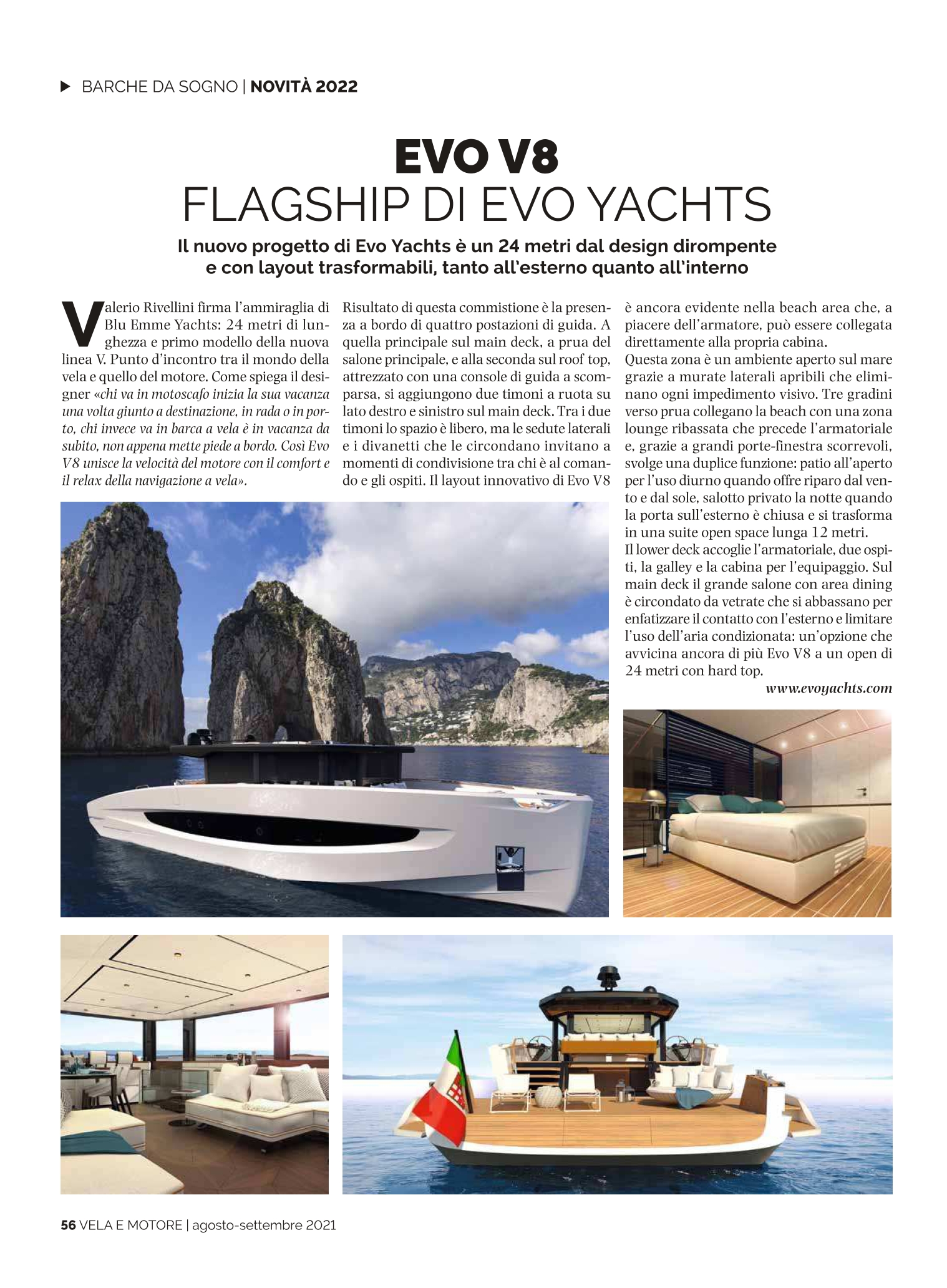Valerio Rivellini firma l’ammiraglia di Blu Emme Yachts: 24 metri di lunghezza e primo modello della nuova linea V. Punto d’incontro tra il mondo della vela e quello del motore.