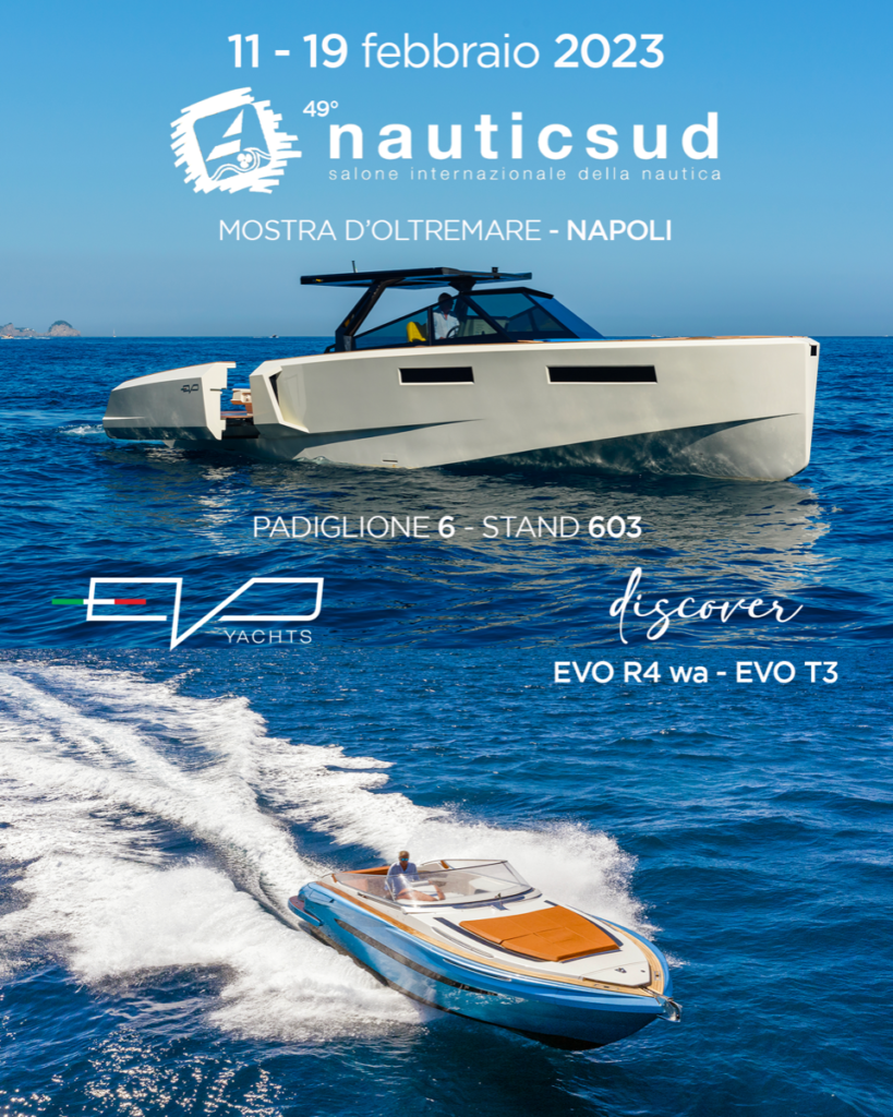 Dopo i successi ottenuti ai saloni internazionali, il cantiere partenopeo torna a esporre i suoi modelli al NauticSud. Al salone napoletano, in programma dall’11 al 19 febbraio, i visitatori avranno l’occasione di salire a bordo a due modelli di punta del cantiere: Evo R4 WA e Evo T3.