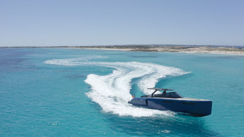 Tratto distintivo dell’imbarcazione, come da tradizione, sono le sponde laterali “Xtension” che consentono di incrementare del 40% lo spazio della beach area, trasformandola in una terrazza pieds dans l’eau di oltre 25 metri quadrati. A poppa trova posto anche il “Transformer”, una piattaforma opzionale, perfettamente integrata nella spiaggetta, che può estendersi grazie a un sistema idraulico e può essere usato come un supporto per l’imbarco o lo sbarco dalla banchina, come scala a mare, come piattaforma tuffi regolabile in altezza o supporto per tender e giochi d’acqua.