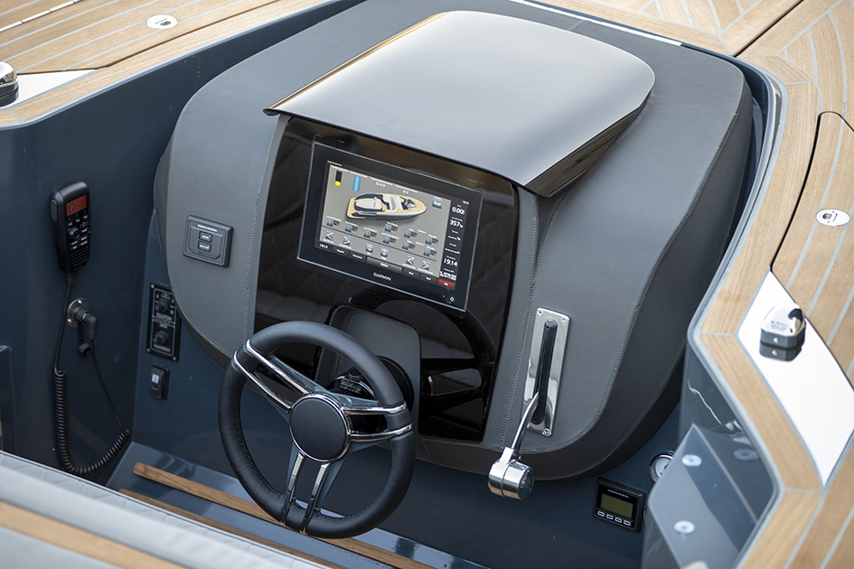 A impreziosire ulteriormente l’imbarcazione, la domotica: tutte le funzionalità di bordo possono essere comandate sia dall’elegante pannello di comando presente sul posto di guida, interamente touch screen, che dallo smartphone. Infine, per facilitare le operazioni di varo e alaggio e poterle effettuare in massima sicurezza anche in condizione di mare formato, Rivellini ha progettato uno speciale sistema che prevede quattro punti di sollevamento bilanciati che riducono al minimo le oscillazioni durante le operazioni di movimentazione della barca.