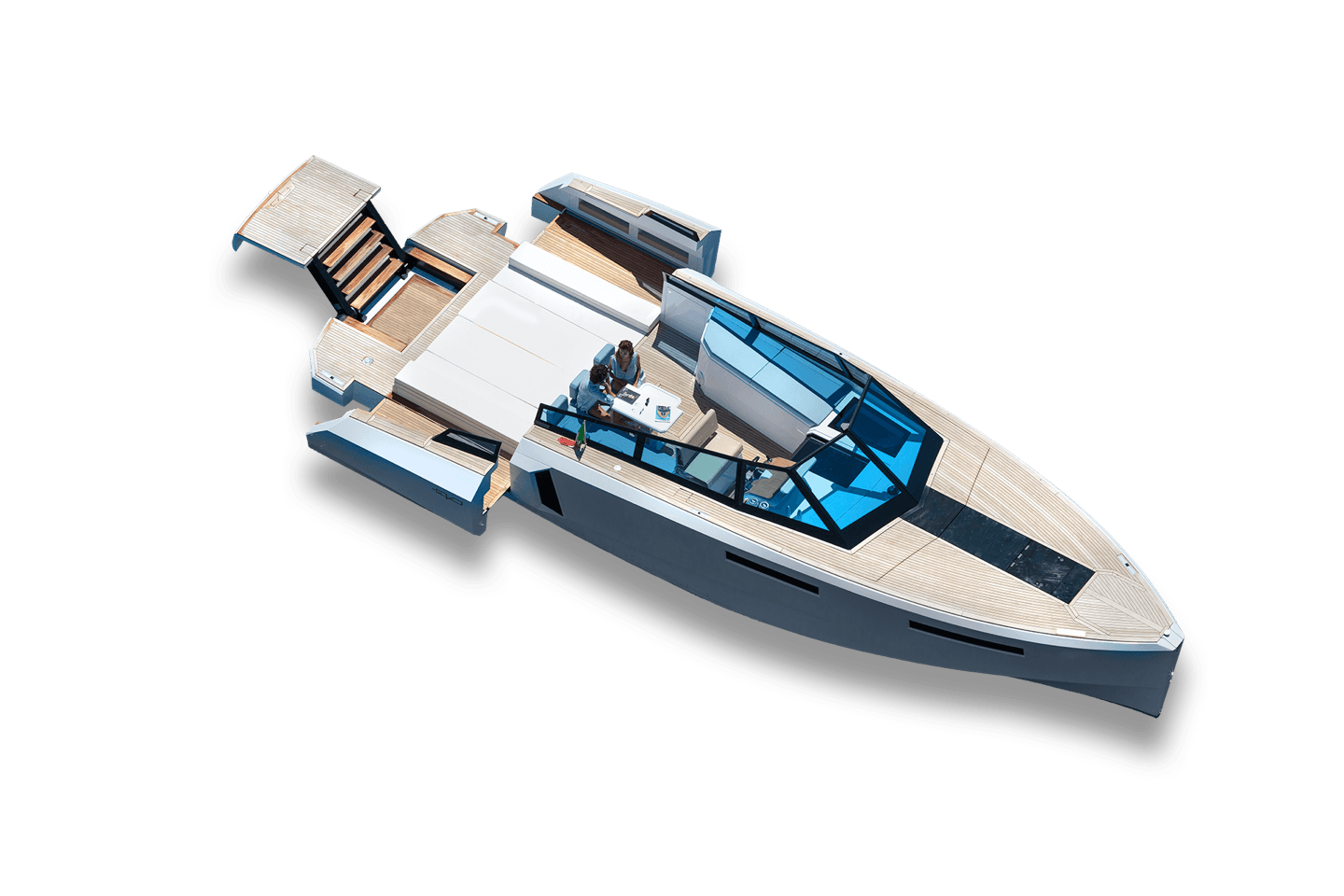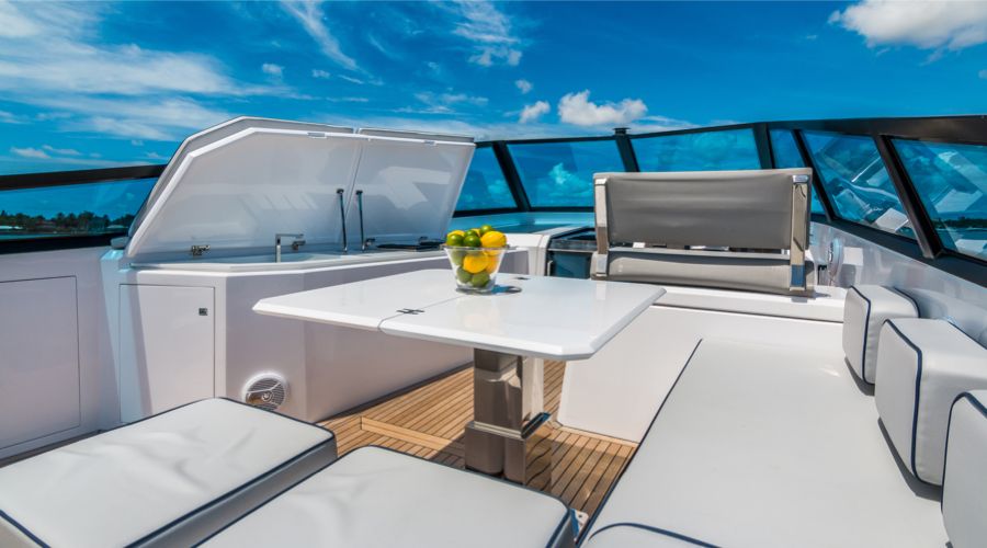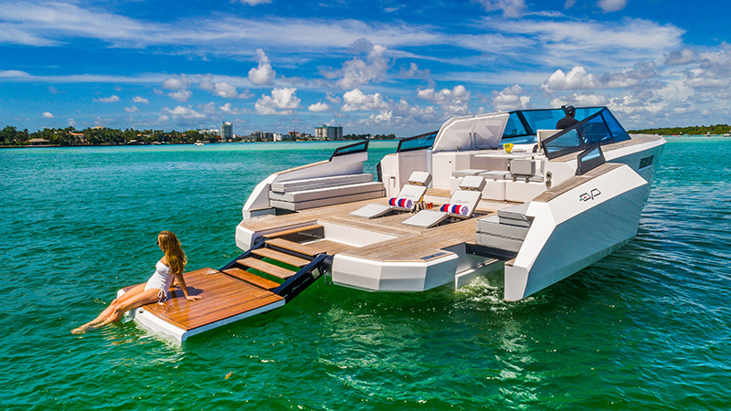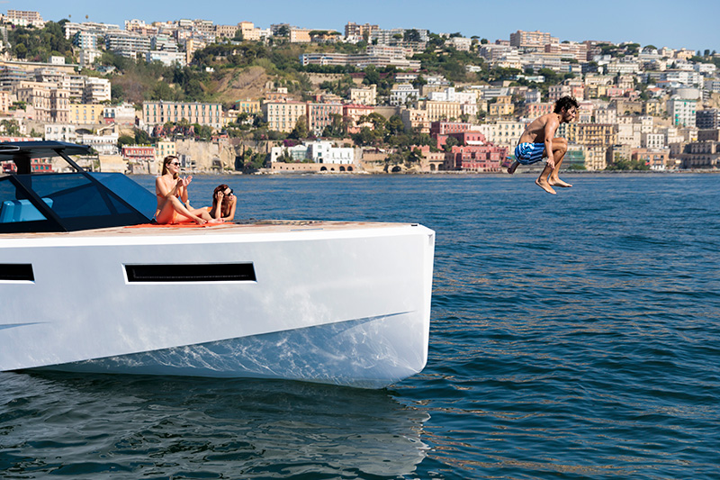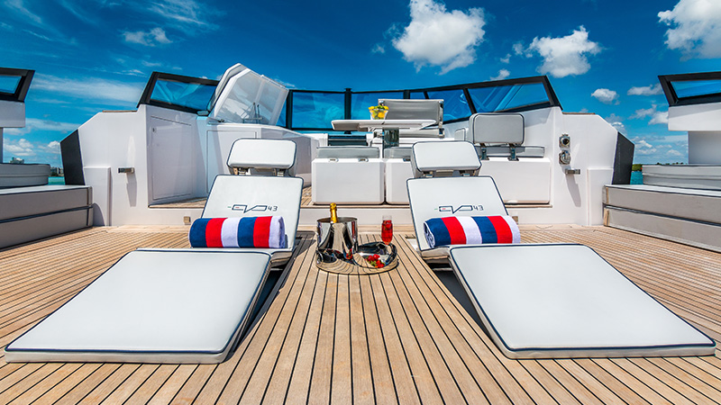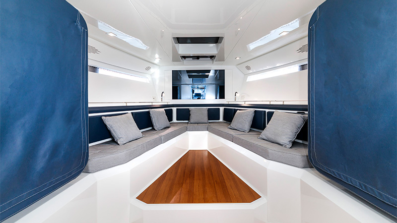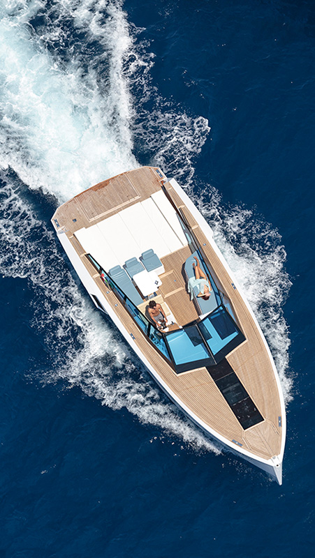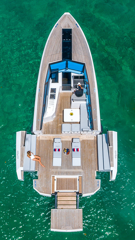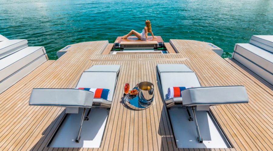 Basta un tap sul touch screen dei comandi e in 30 secondi si aprono le murate XTensions, che trasformano la spiaggetta in un’area di 25 mq. Questo significa che può diventare un lounge, un solarium con chaise longue integrate, un open space per feste. Non passerai inosservato in nessuno di questi casi.