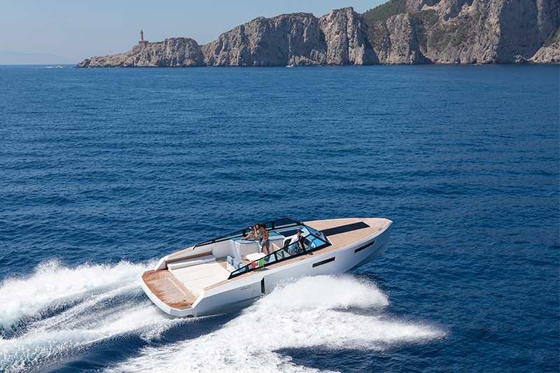 R4 è equipaggiato con soluzioni di design ideate pensando alla sicurezza, ma orientate al puro divertimento. Il sistema di comandi a cascata permette il controllo manuale o via app. I motori Volvo Penta garantiscono prestazioni allo stato dell’arte ed efficienza dei consumi.