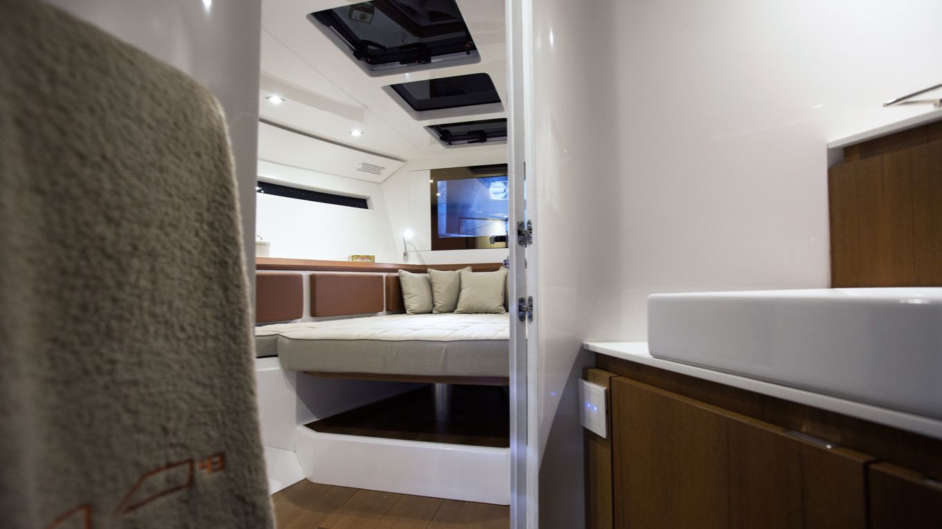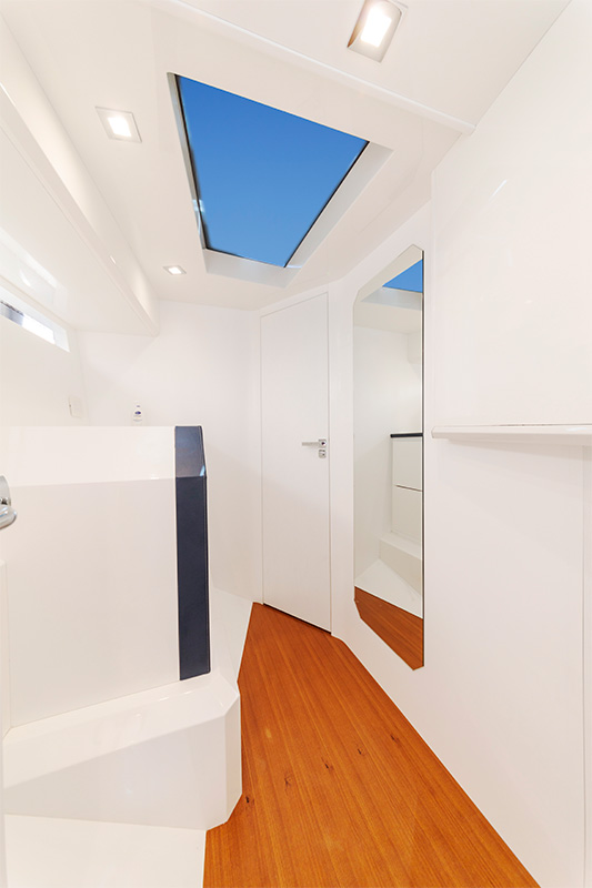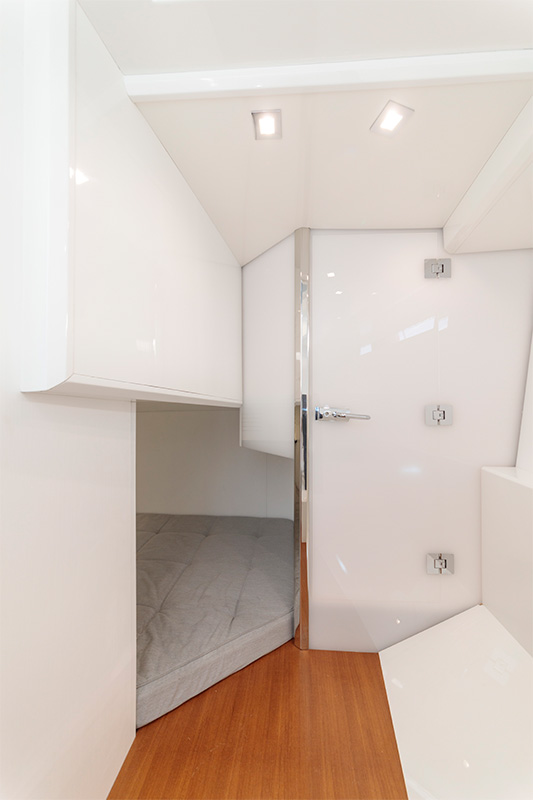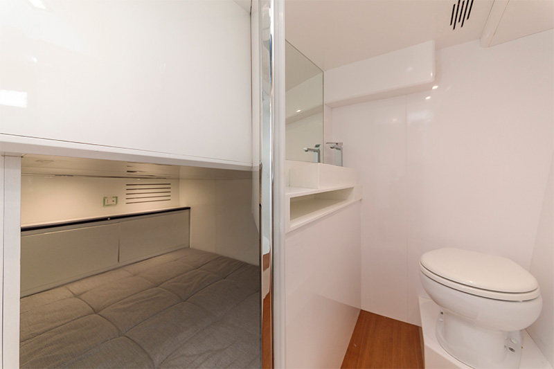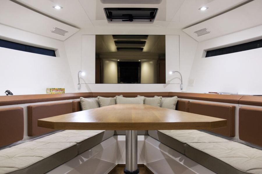 Con un solo gesto, la dinette si trasforma in letto matrimoniale extra, in aggiunta alla cabina queen-size con bagno privato.
